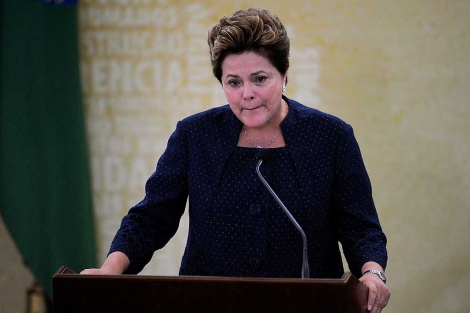 La presidenta de Brasil, Dilma Rousseff, intenta contener las lágrimas. | Afp- Rousseff lloró por el sufrimiento de familiares de los muertos y desaparecidos